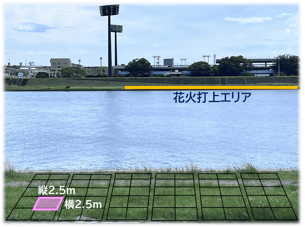 - ※観覧区画には敷物等の準備はありません。舗装されておらず砂利や草の上になるため、ビニールシートや座布団などをご用意いただくことをおすすめします。