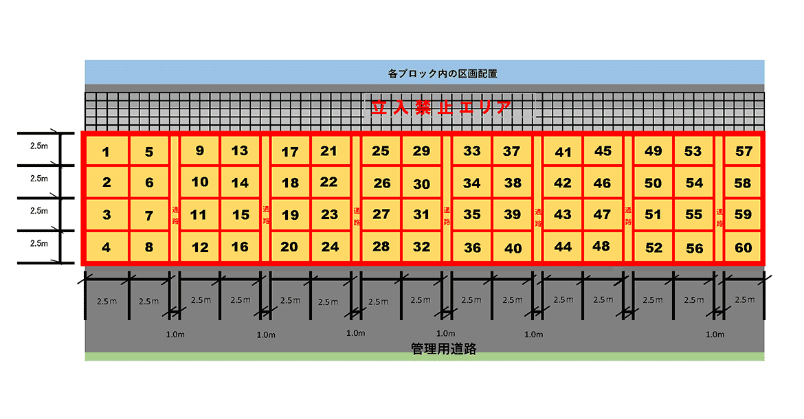 - 7月1日(火)10時~7月25日(金)の間に申込みを受付けた後、抽選で当選した方に販売いたします。(申込みは1人につき1回まで。購入は1人につき最大2区画まで。)