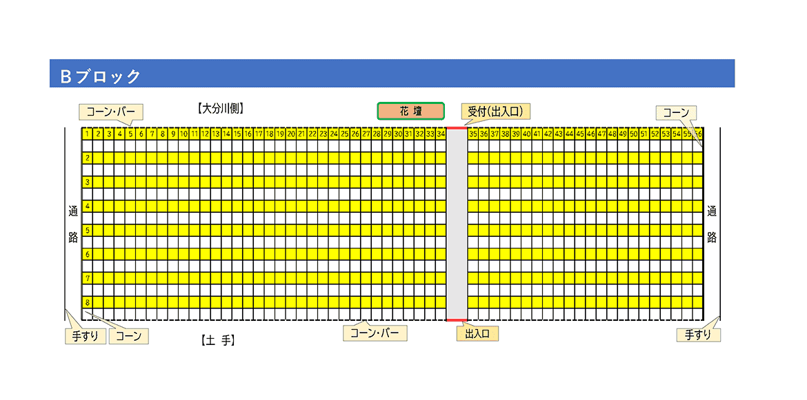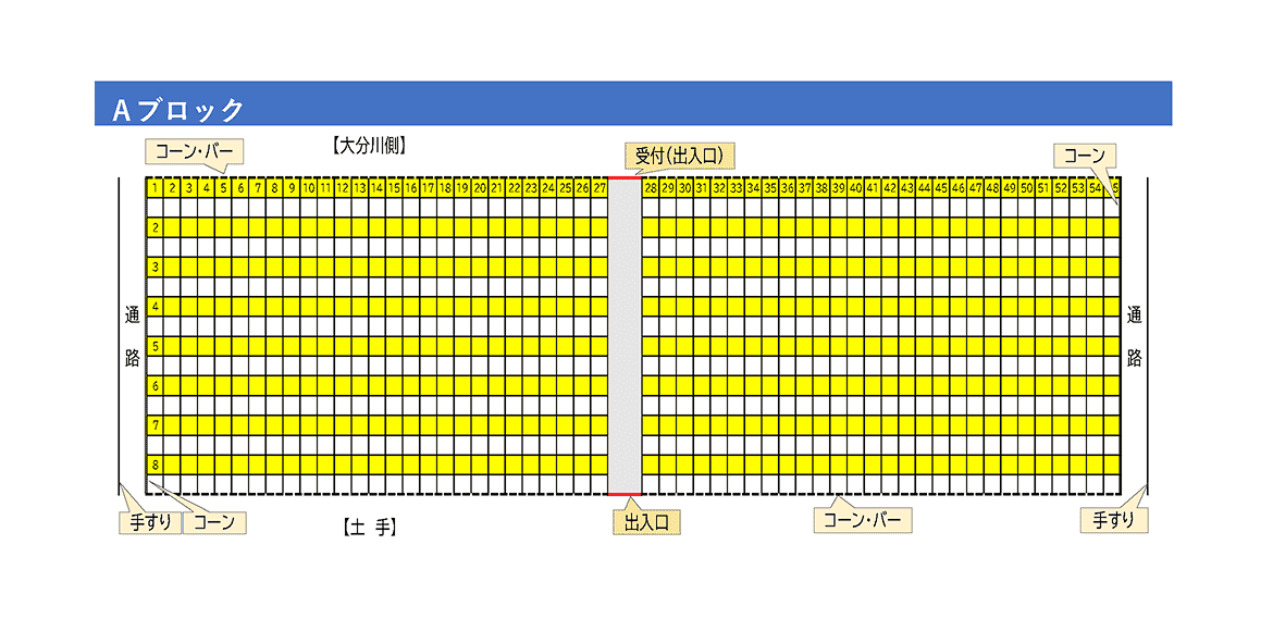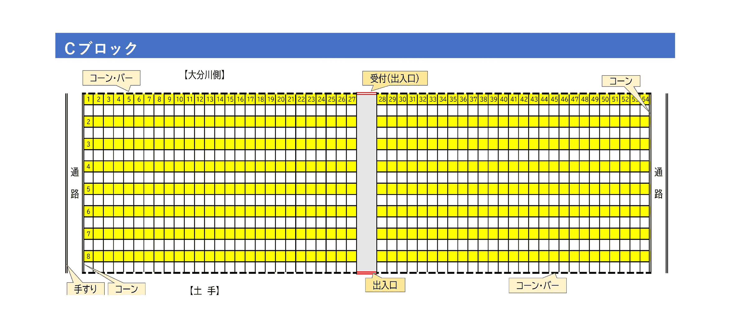 階段席は、ブロック(A・B・C)単位でのご案内となり、各ブロック内は自由席です。